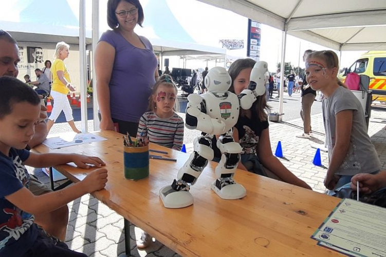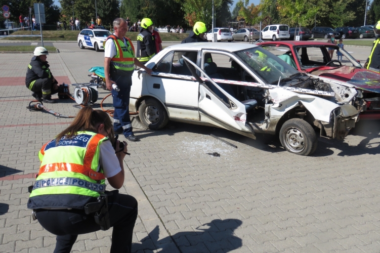 A Győr-Moson-Sopron Megyei Rendőr-főkapitányság Baleset-megelőzési Bizottságának munkatársa a Soproni Rendőrkapitányság Baleset-megelőzési Bizottság tagjaival, valamint bűnmegelőzési szakemberekkel Sopronban, a Walter Autó által megrendezett Balesetmeg