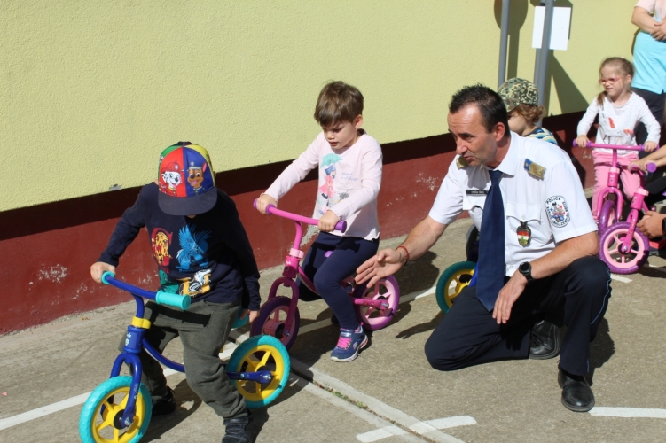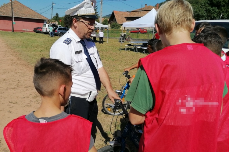 A rendőrök a biztonságos kerékpározás szabályait ismertették a résztvevőkkel a helyszínen.