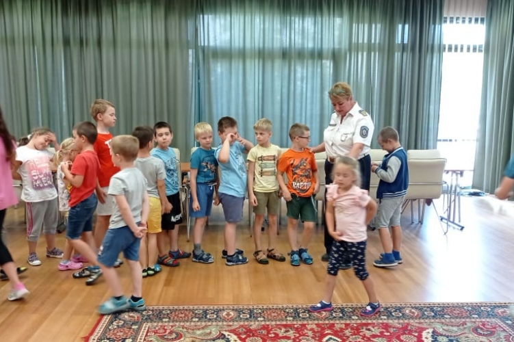 Rendőrök látogattak a táborozó gyerekekhez.