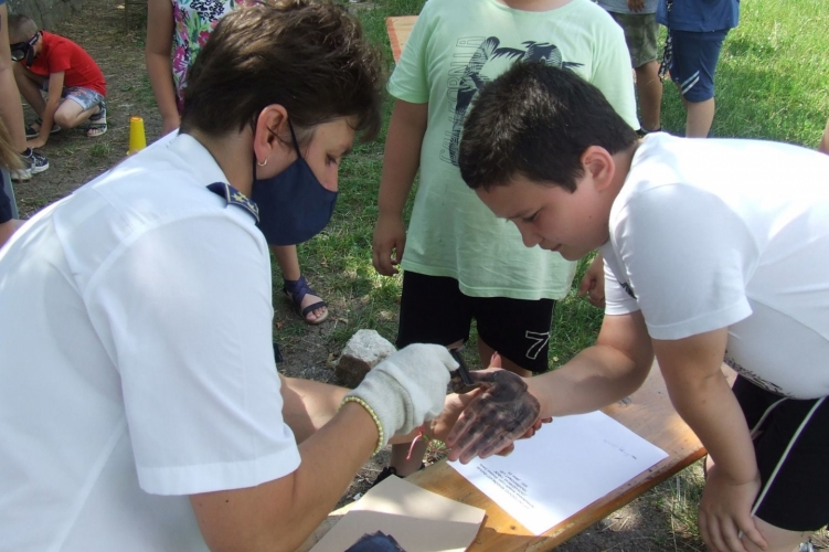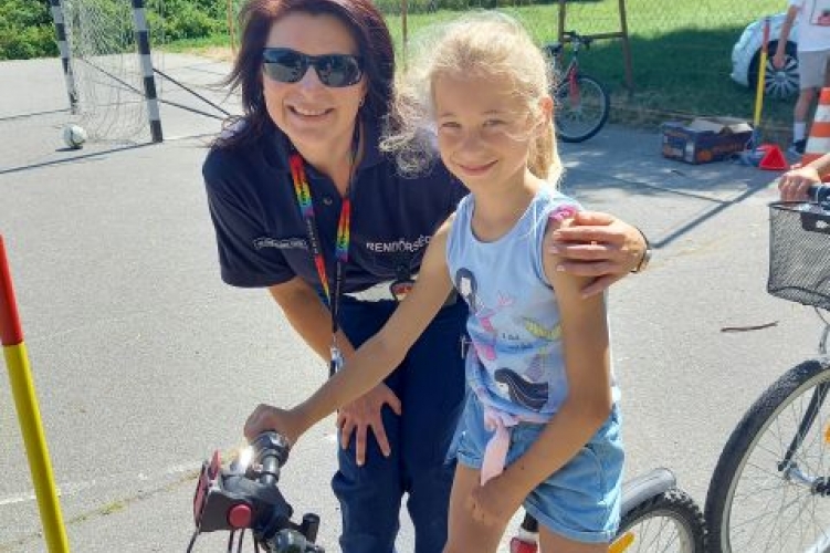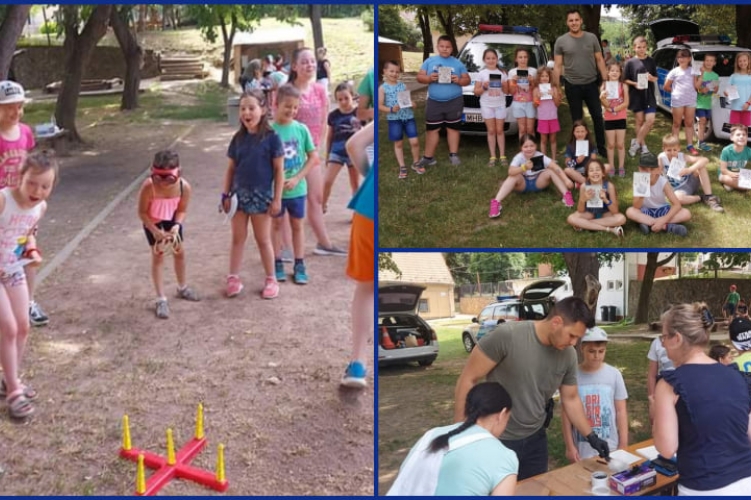 A rendőrnő táborok programjait színesítette a játékos feladatokkal.