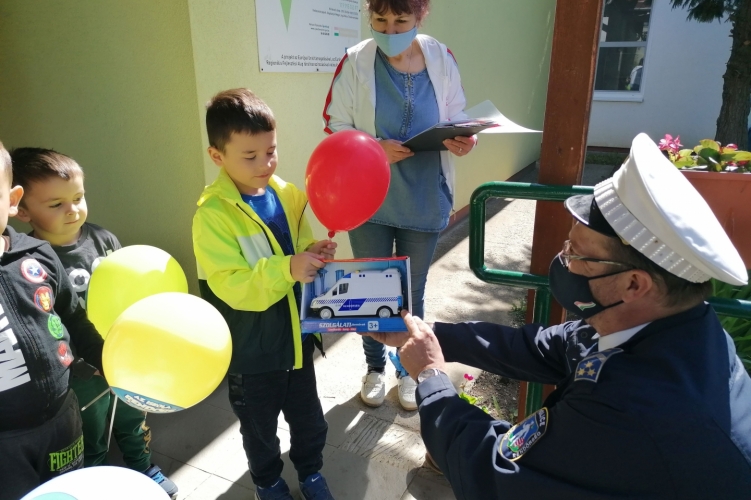 Balesetmegelőzési szakemberek adtak át ajándékot az óvodásoknak Salgótarjánban.