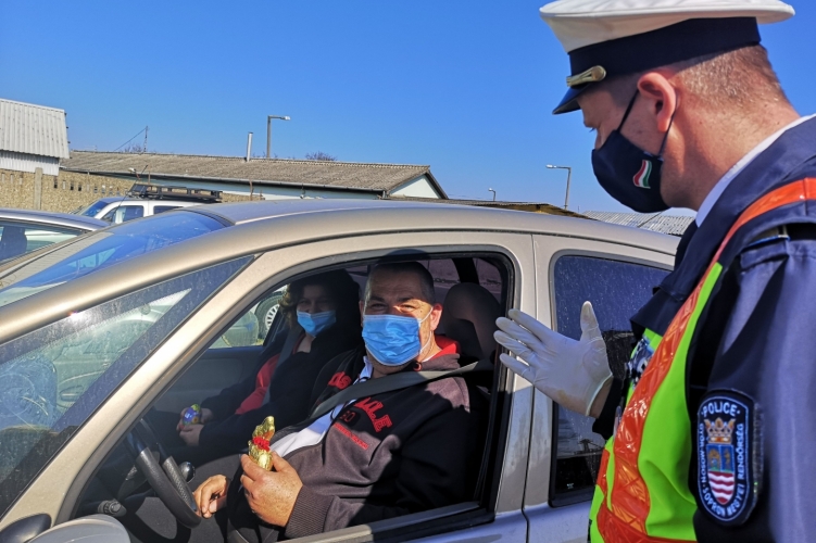 A Győr-Moson-Sopron Megyei Rendőr-főkapitányság Baleset-megelőzési Bizottsága a húsvéti ünnepek alkalmából azokat a közlekedőket jutalmazta meg apró ajándékkal, akik saját biztonságuk védelme érdekében az autójukban szabályszerűen használták a passzív