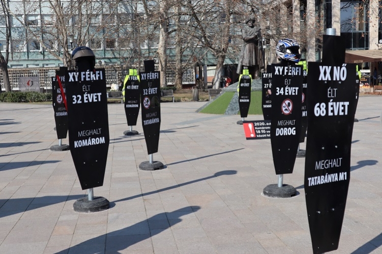 A Komárom-Esztergom Megyei Balesetmegelőzési Bizottság a tatabányai Árpád téren 18 arc nélküli sziluettet állított ki.