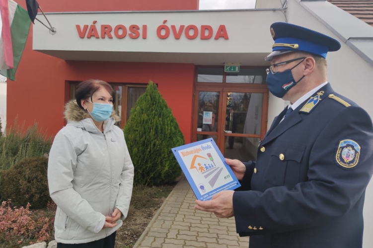 A kitüntető címet jelző táblát Megyeri Zsolt r. alezredes adta át az intézmény vezetőjének, Simon Csabánénak.