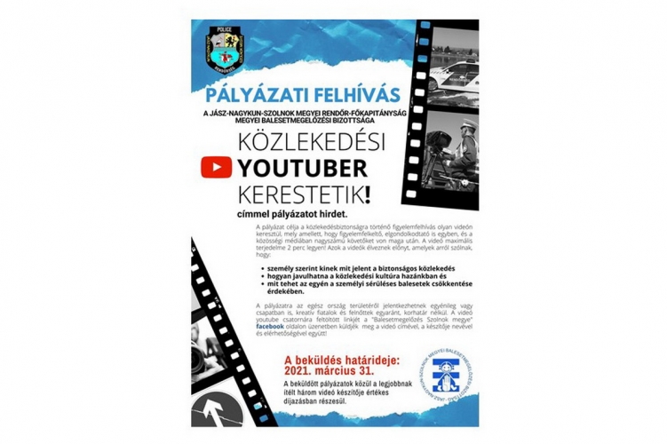 A Jász-Nagykun-Szolnok Megyei Rendőr-főkapitányság Balesetmegelőzési Bizottság ismét meghirdette közlekedésbiztonsági videópályázatát.