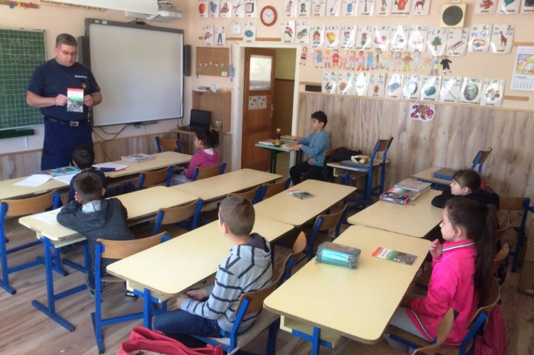 Az egyenruhások egy debreceni általános iskolában tartottak előadást gyerekeknek.