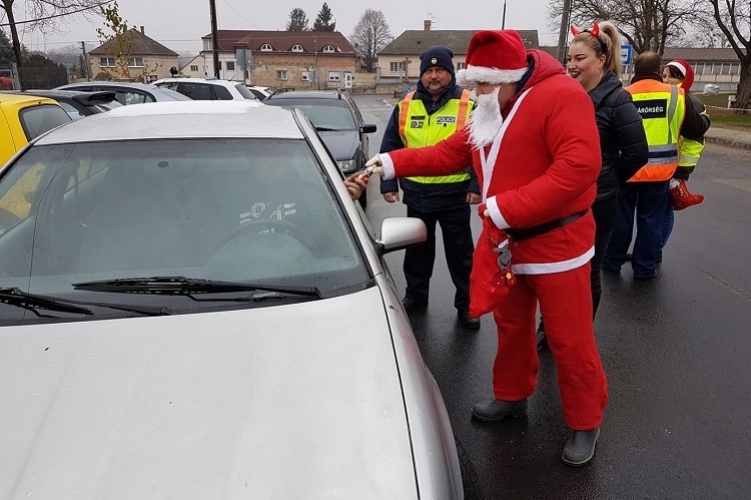Nagy volt az érdeklődés a rendőrmikulás Szolnokon elhagyott csomagjai iránt, de nemcsak a gyerekek kaptak ajándékot, hanem a szabálykövető járművezetők is.