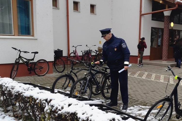 Az iskolarendőr láthatóságot segítő eszközöket tett a kerékpárokra Balmazújvárosban.