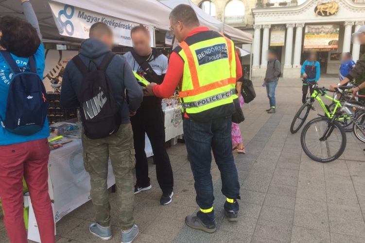 A baleset-megelőzési szakemberek kerékpárosoknak adtak tanácsokat Debrecenben.