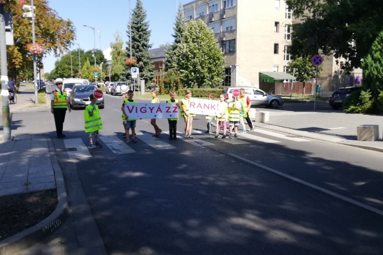 A monori rendőrök általános iskolás gyerekekkel együtt hívták fel a közlekedők figyelmét a megnövekedett gyalogosforgalomra az iskolák közelében található gyalogos-átkelőhelyeknél.