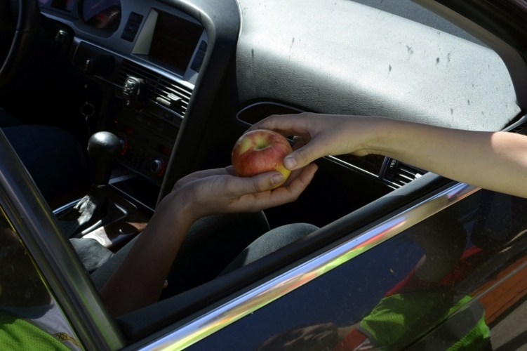 Almával jutalmazták a gyerekek a szabályosan közlekedő járművezetőket Kiskőrösön.