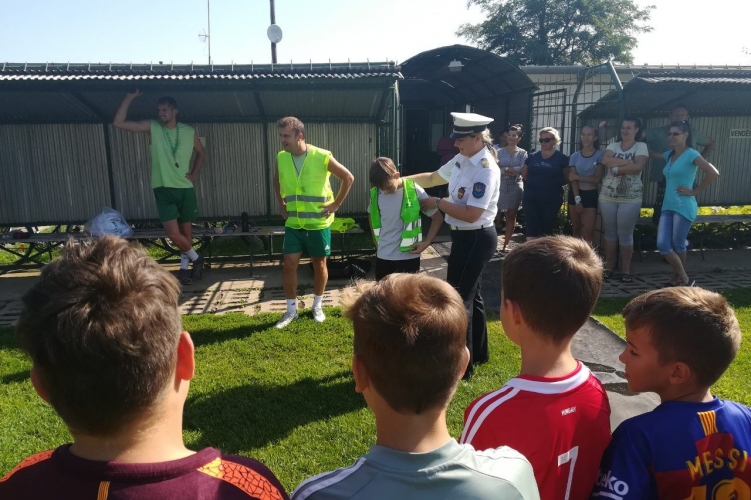 Láthatósági mellényeket osztottak ki táborozó gyerekeknek és kísérőiknek a tiszavasvári rendőrök.