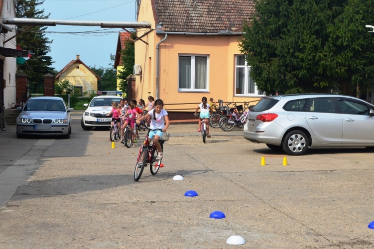 A pápai rendőrök előadást tartottak a közlekedés alapvető szabályairól a táborozó gyerekeknek.