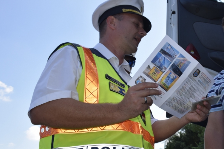 A rendőrök Komárom-Esztergom megyében is osztották a baleset-megelőzési kampányhoz való csatlakozás feltételeiről a szórólapokat.