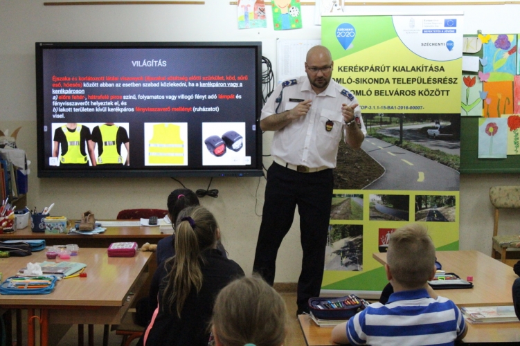 Baleset-megelőzési előadás keretin belül hívta fel a figyelmet a kerékpározás veszélyeire a Komlói Rendőrkapitányság baleseti helyszínelője.