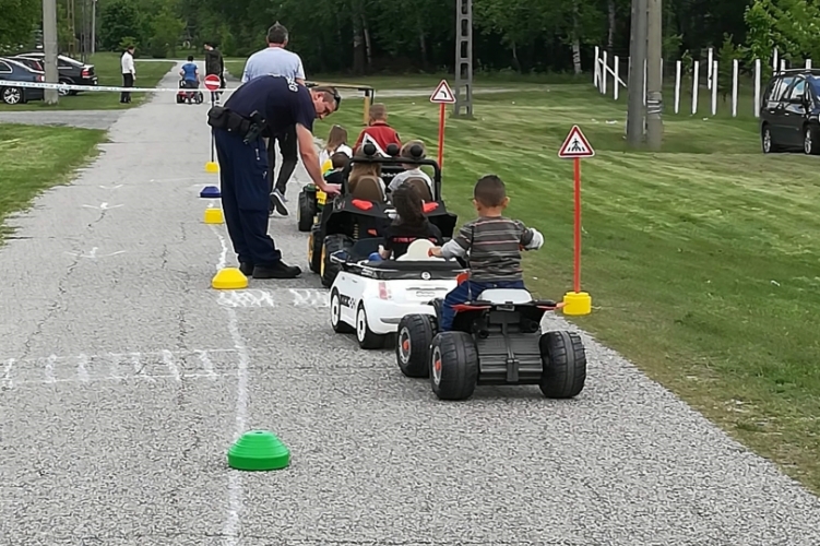 Gyermeknapi sportrendezvényen adott hasznos tanácsokat óvodások részére a Hajdúnánási Rendőrkapitányság munkatársa.
