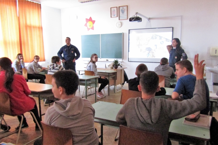 A rendőrök egy hajdúböszörményi általános iskola tanulóinak tartottak közlekedésbiztonsági előadást.
