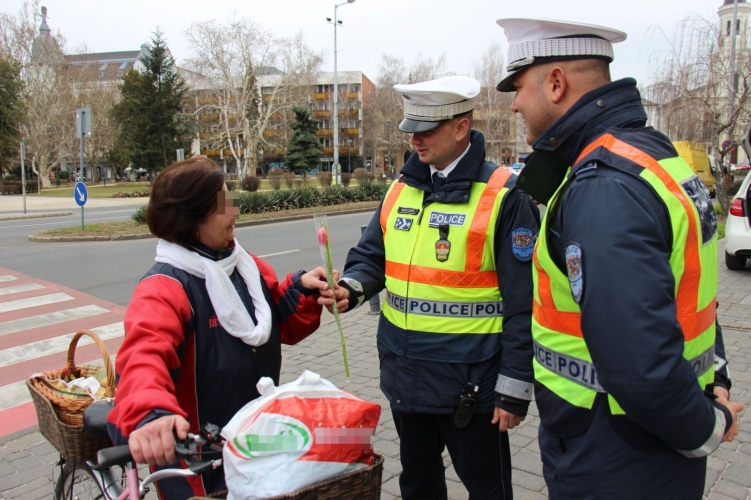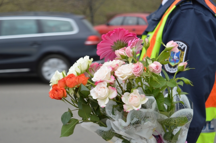 A Heves megyei rendőrök virággal köszöntötték a szabályosan közlekedő hölgyeket.
