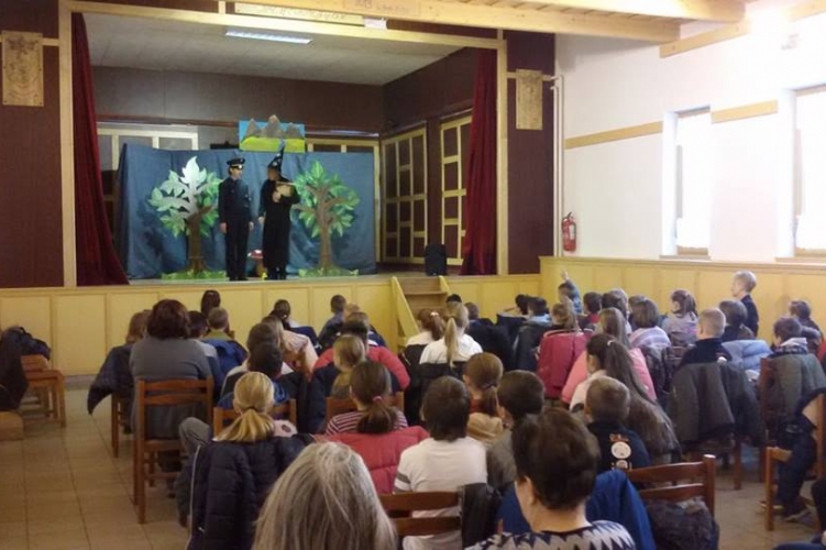 A pápai rendőrök közlekedési szabályokkal tarkított mesejátékkal lepték meg a nemesszalóki kisdiákokat.