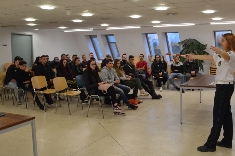 A szentendrei rendőrök tartottak karos forgalomirányító bemutatót diákoknak.