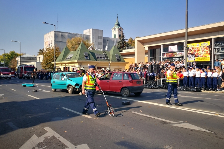 Látványos és tanulságos baleset-megelőzési programot szervezett a rendőrség Békéscsabán. A rendezvényen közel 2000 diák vett részt.
