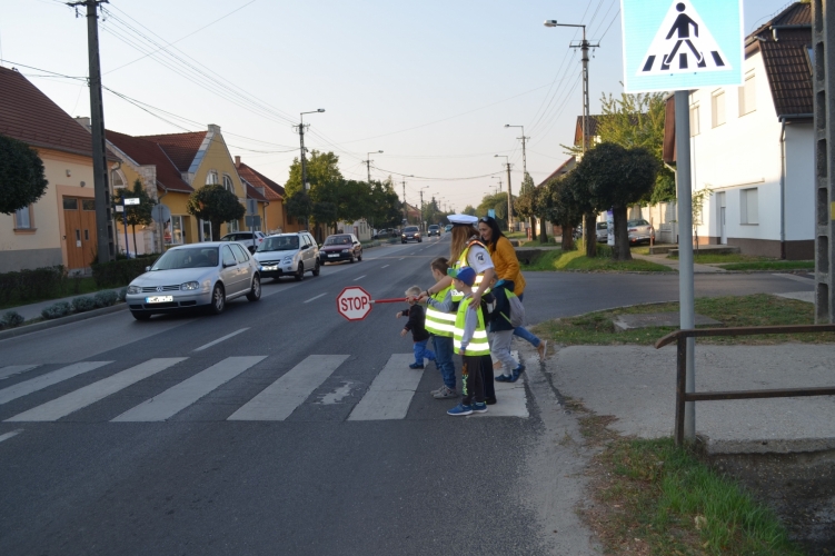 Pakson a Hétszínvirág Óvoda ovisaival irányították a forgalmat a gyalogosátkelőhelyen.