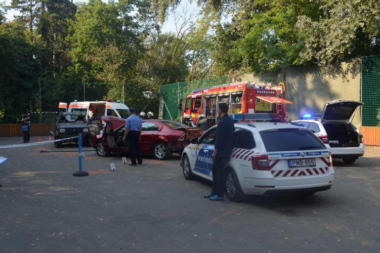 Helyi középiskolásoknak tartottak baleseti szimulációs bemutatót a rendőrök és a társszervek Gödön.