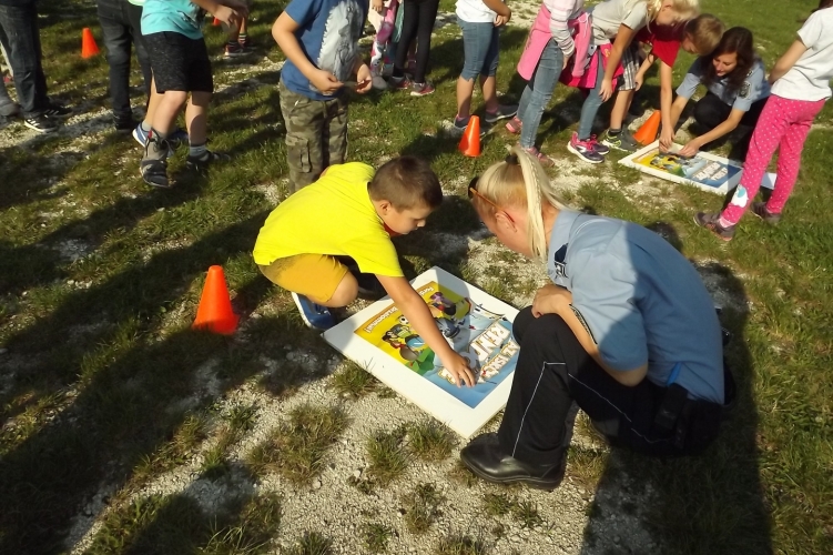 A rendőrök a biztonságos közlekedésre tanították a kicsiket.