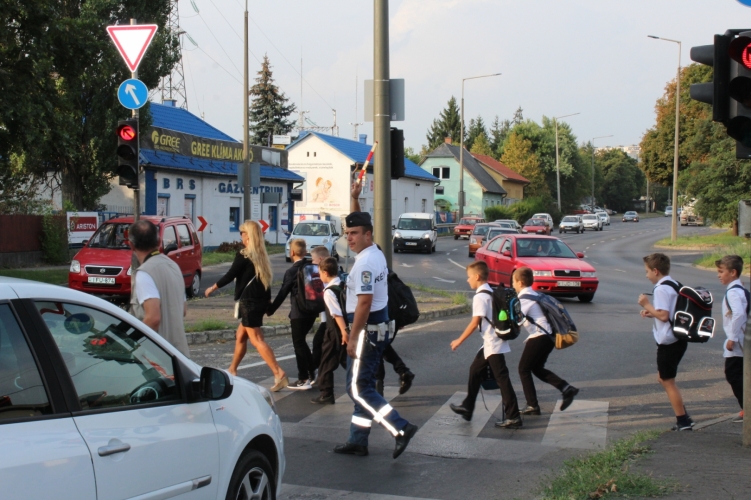 A pápai rendőrök az általános iskolák környékén segítik a diákok biztonságos közlekedését.