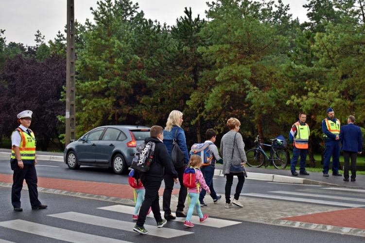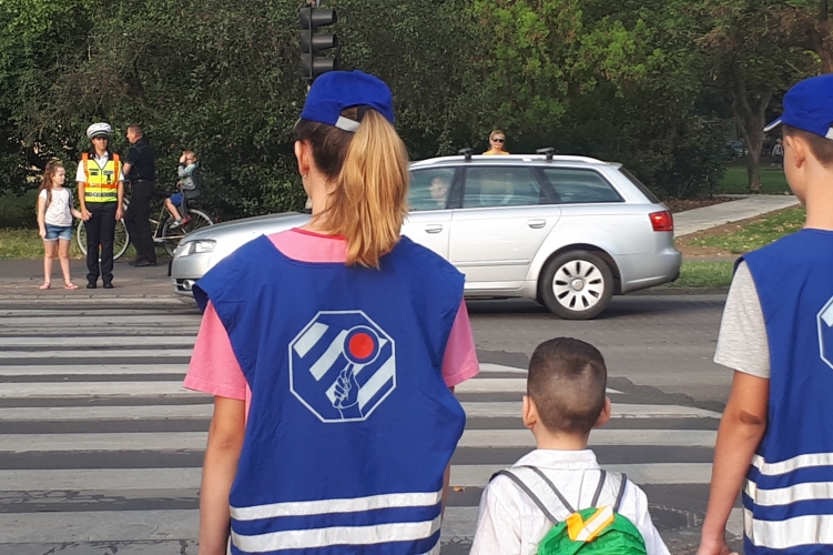 Rendőrök és polgárőrök is segítik az iskolába induló gyermekek biztonságos közlekedését.