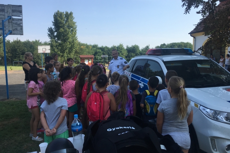 Gólyatáborban résztvevő gyerekhez látogattak el a kisvárdai rendőrök.
