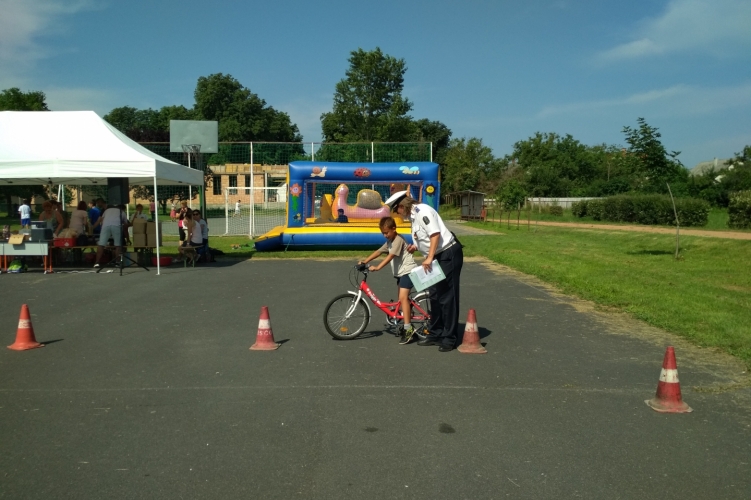 A rendőrök baleset- és bűnmegelőzési programmal vettek részt a helyi iskolai gyereknapi rendezvényen.
