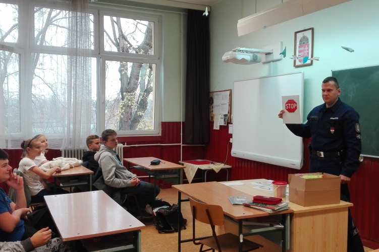 A Dunaszegi Körzeti Általános Iskolában tartott prevenciós előadást a terület körzeti megbízottja.