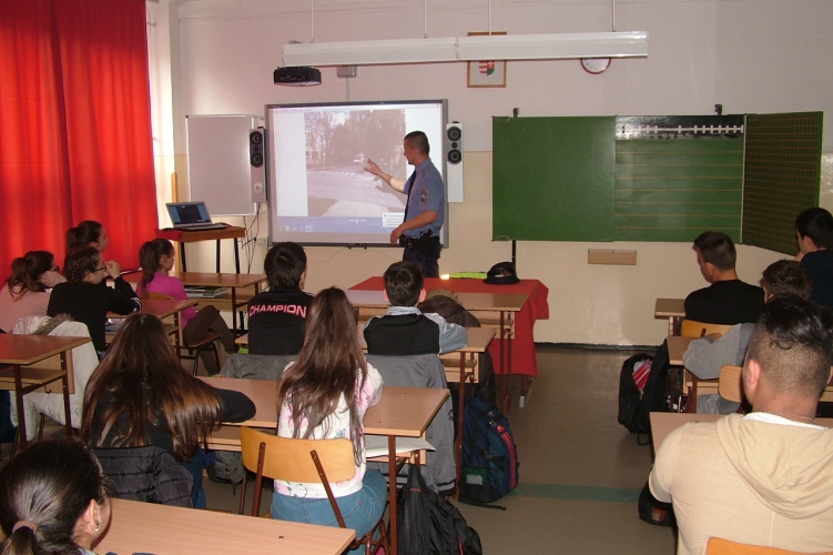 Egy balmazújvárosi iskola diákjainak tartott baleset-megelőzési előadást a helyi rendőrkapitányság munkatársa.