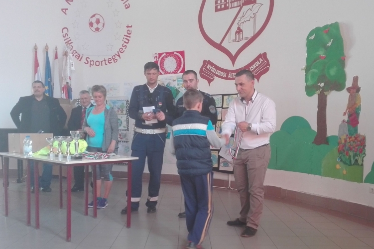 A közlekedésbiztonsági vetélkedő dobogós helyezettjeit külön jutalmazták.