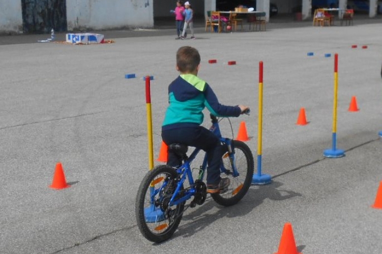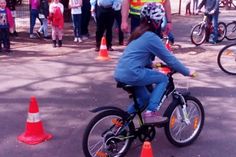 A gyerekek akadálypályán gyakorolhatták a kerékpáros közlekedést egy debreceni iskolában.
