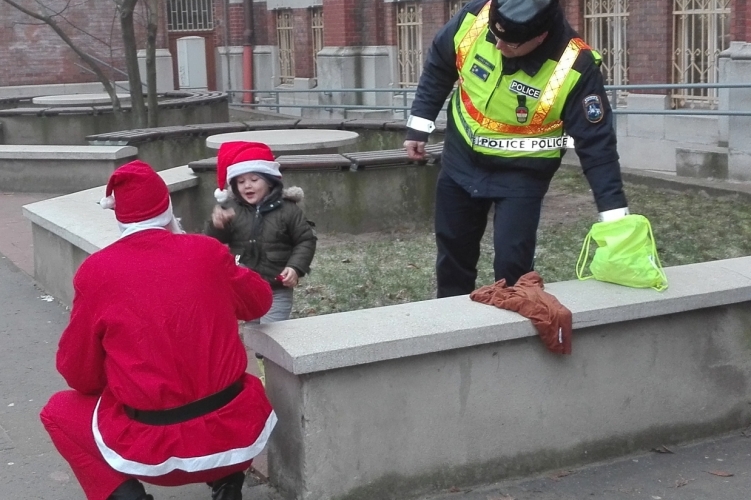 Rendőr kíséretében érkezett a Mikulás egy debreceni iskolához, ahol szaloncukrot ajándékozott a szabályosan közlekedő diákoknak.