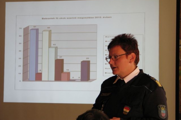 A Győri Rendőrkapitányság baleset-megelőzési előadója az E.ON munkatársainak tartott interaktív előadást.