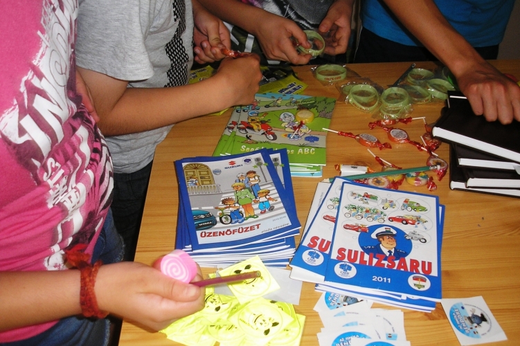 A pápakovácsi Kastély Német Nemzetiségi Nyelvoktató Általános Iskola napközis táborában közlekedési vetélkedővel várta a gyerekeket a Pápai Rendőrkapitányság munkatársa.