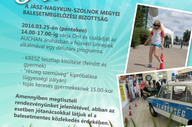 A Jász-Nagykun-Szolnok Megyei Balesetmegelőzési Bizottság 2016. március 25-én délután játékos feladatokkal várja a közlekedőket Szolnokon.