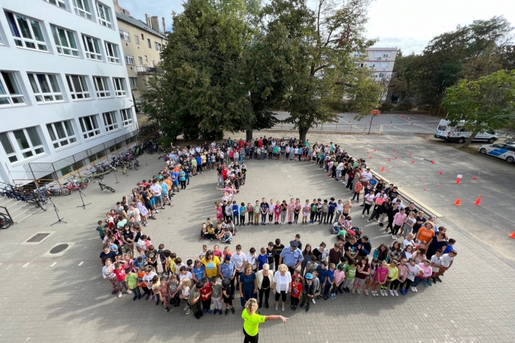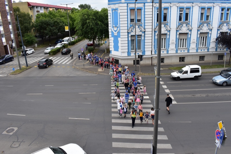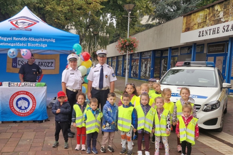 A Biztonság Hete alkalmából Békéscsabán megtartott rendezvényen rendőri forgalomirányítás mellett óvodások és iskolások hívták fel a figyelmet a közlekedés szabályaira a gyalogos-átkelőhelyeken.