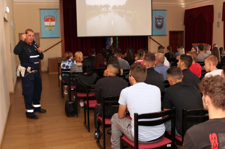 Pintér József rendőr főtörzszászlós baleset-megelőzési előadást tartott diákoknak.