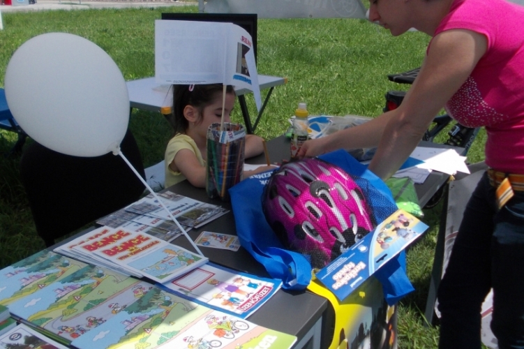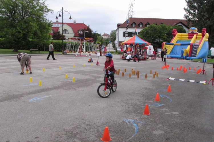 Az egész napos rendezvényen kerékpáros ügyességi pályán is gyakorolhattak a gyerekek.