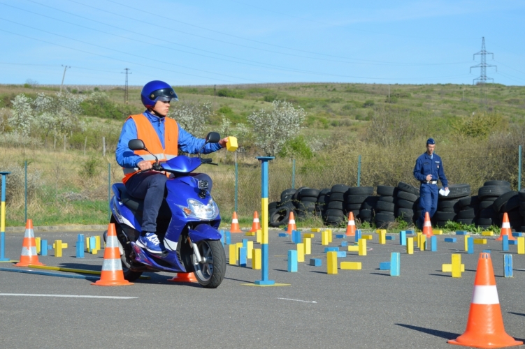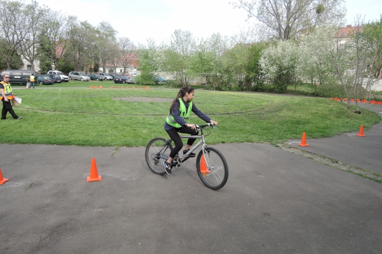 A döntőbe jutott gyerekek a tesztlap kitöltése után ügyességi pályán közlekedtek.
