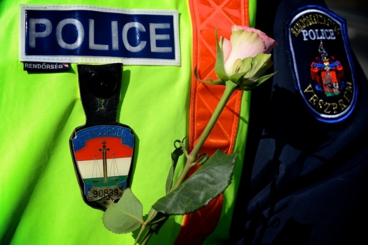 Virággal és csokoládéval köszöntötték a hölgy sofőröket a veszprémi rendőrök.