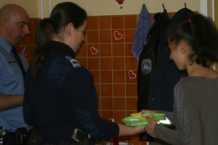 A győri egyenruhások védőfelszereléseket ajándékoztak a közlekedőknek.
