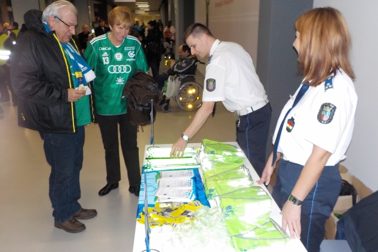 A győri kézilabda mérkőzés előtt a szurkolók ajándékot kaptak a rendőröktől.