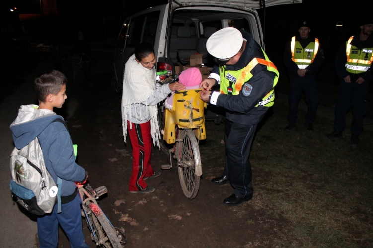 Rendőrök szereltek lámpát kerékpárokra Tiszadobon. (fotógalériával)