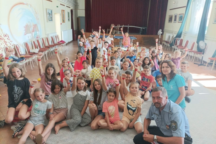 A Győrújbaráti Ifjúsági Gyermektáborban nyaraló diákok rendőrségi szakemberektől kaphattak betekintést a rendőrség életébe, megismerkedhettek a szakterületek sajátosságaival, a hivatás szépségével, illetve interaktív formában bűn- és baleset-megelőzési