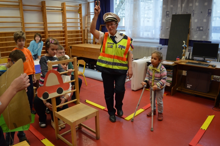 Mozgáskorlátozott gyermekeknek tartott baleset-megelőzési órát Gerendai Sándorné rendőr őrnagy Győrben.